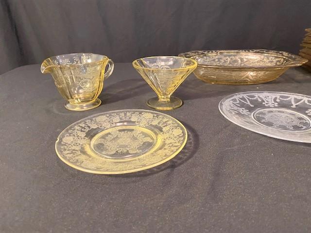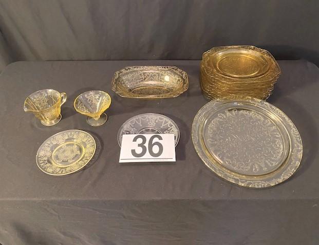 Plates, bowl, creamer & more. Estimated weight of lot: 15lbs. Measurement: 11 1/2"H x 2 1/2"W (largest)
