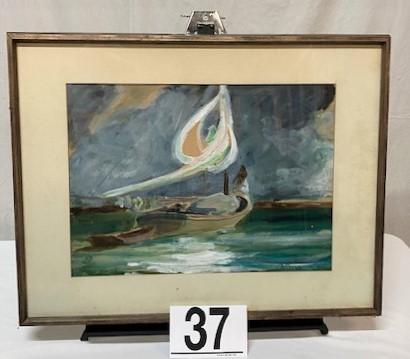 LOT#37: Abstract Sailboat (Believed to be a watercolor)