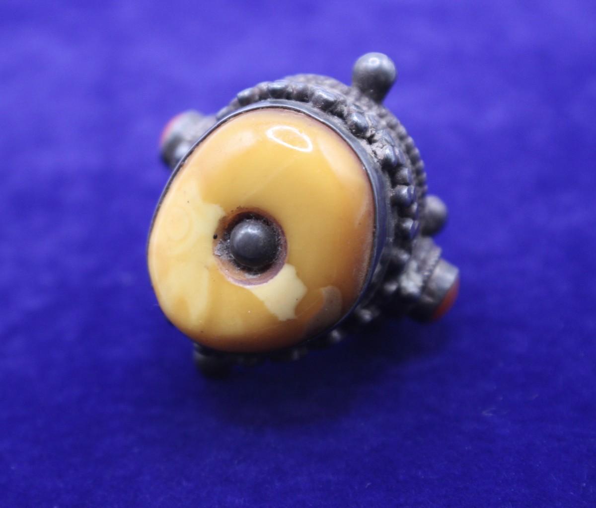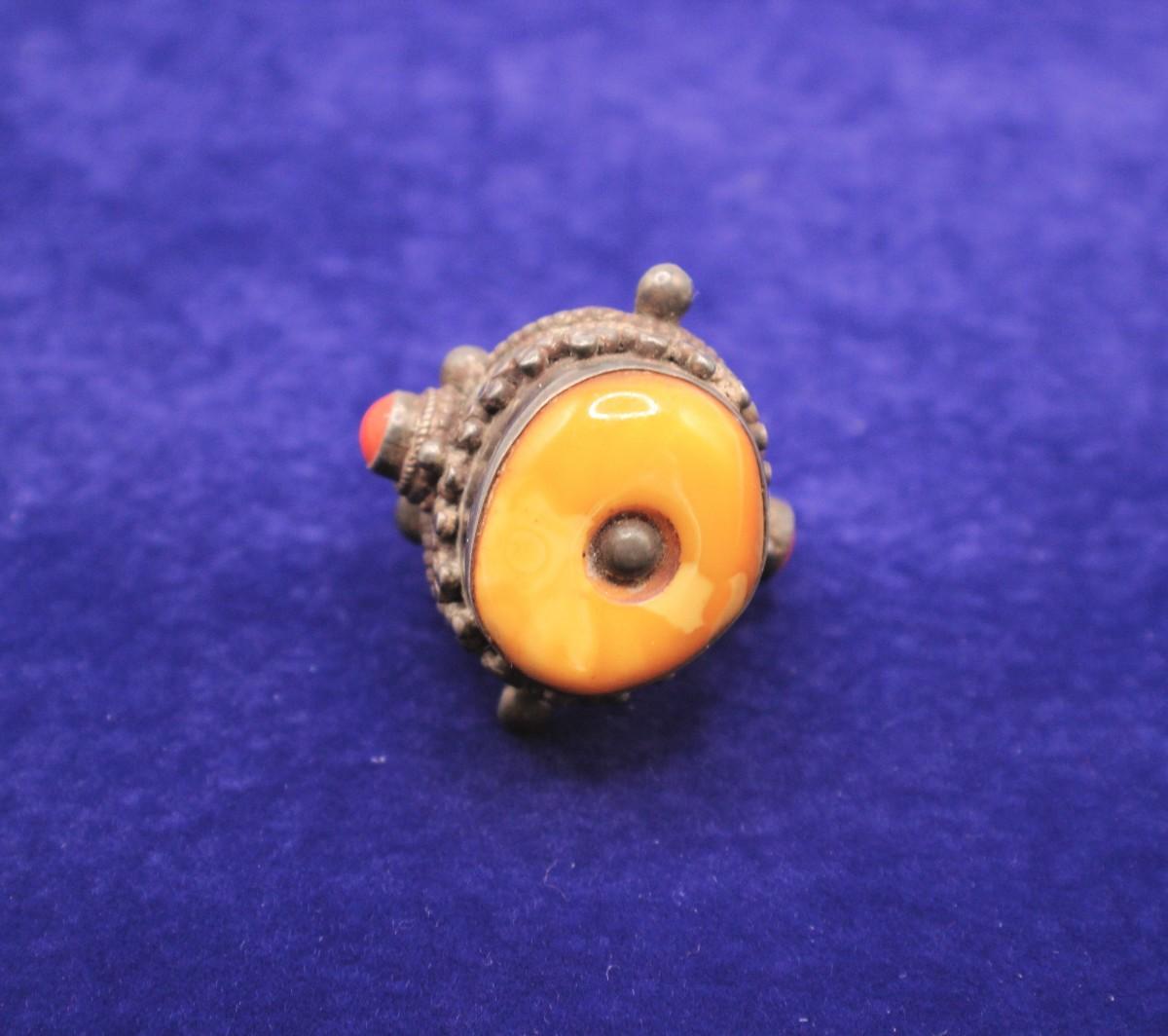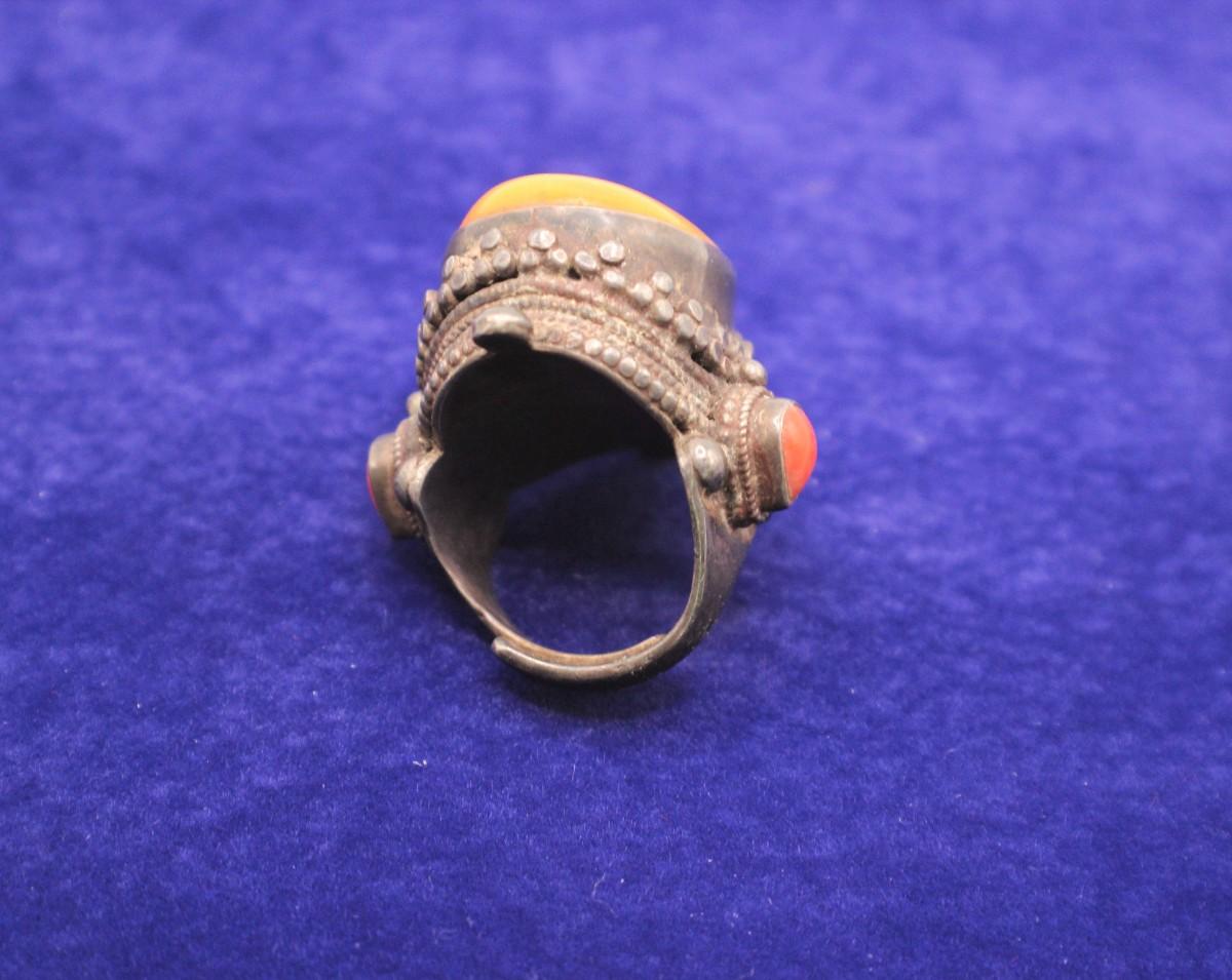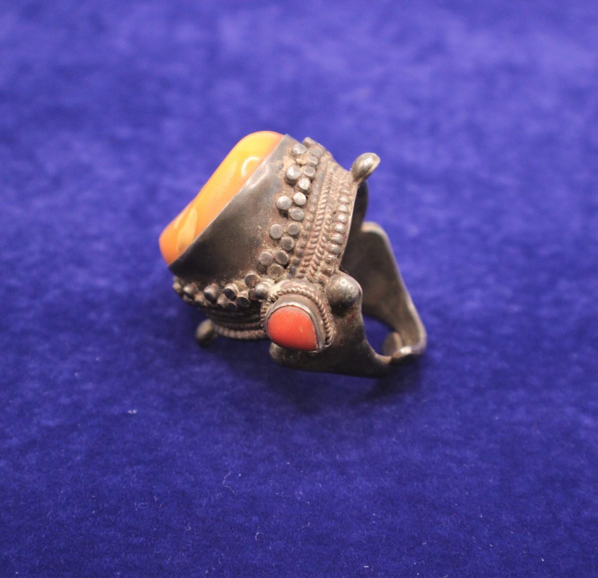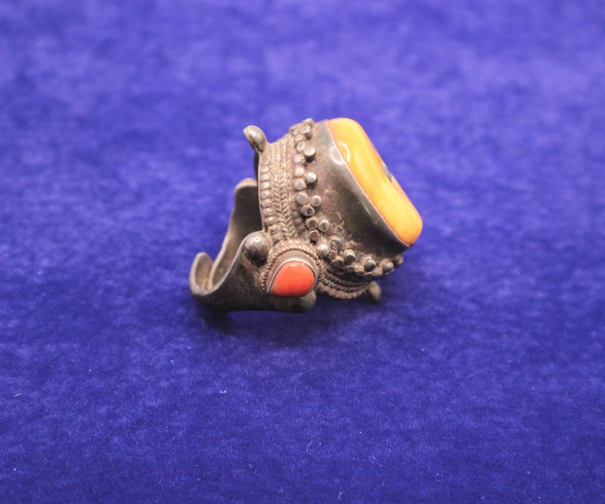 LOT#37: Marked .925 Nepalese Amber & Coral Ring [27.54g]