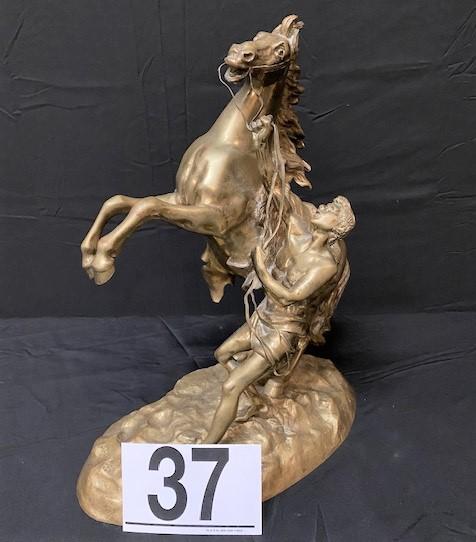 LOT#37: Signed Cousteau Horse with Rider Believed to be Bronze