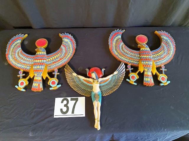 Winged wall plaques. Three pieces. Measurement: 14"L x 15"W (largest)