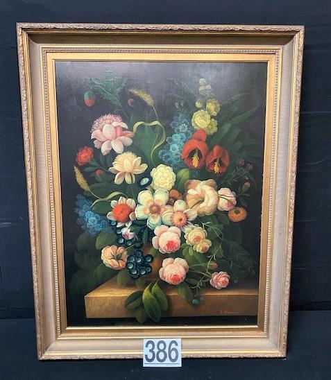 LOT#386: Signed J. Hammel Still Life Oil on Canvas