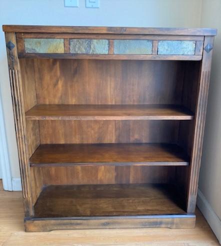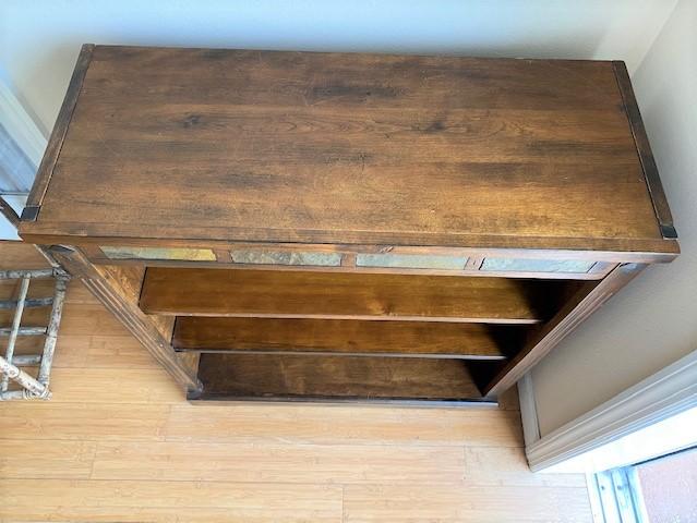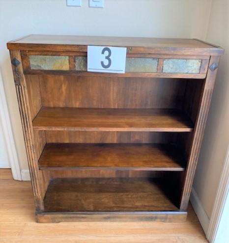 3 shelves. Stone inlay. Estimated lot weight: 50lbs. Measurement: 32"W x 13"D x 36"H.