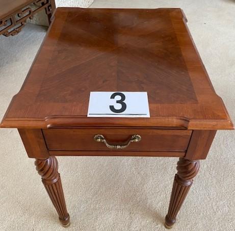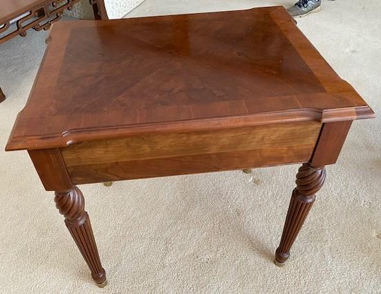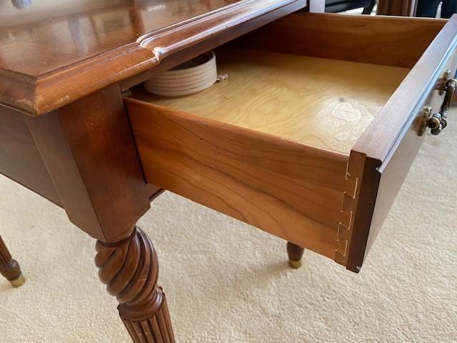 Single drawer. Believed to empire style legs. Measurements: 27'D x 21"W x 26"H