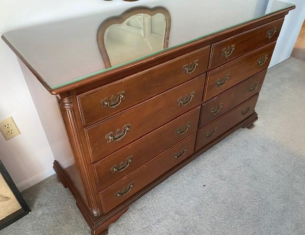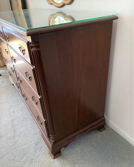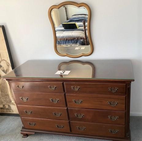 LOT#3MB1: Kling Mahogany Dresser w/ Glass Top & Beveled Wall Mirror