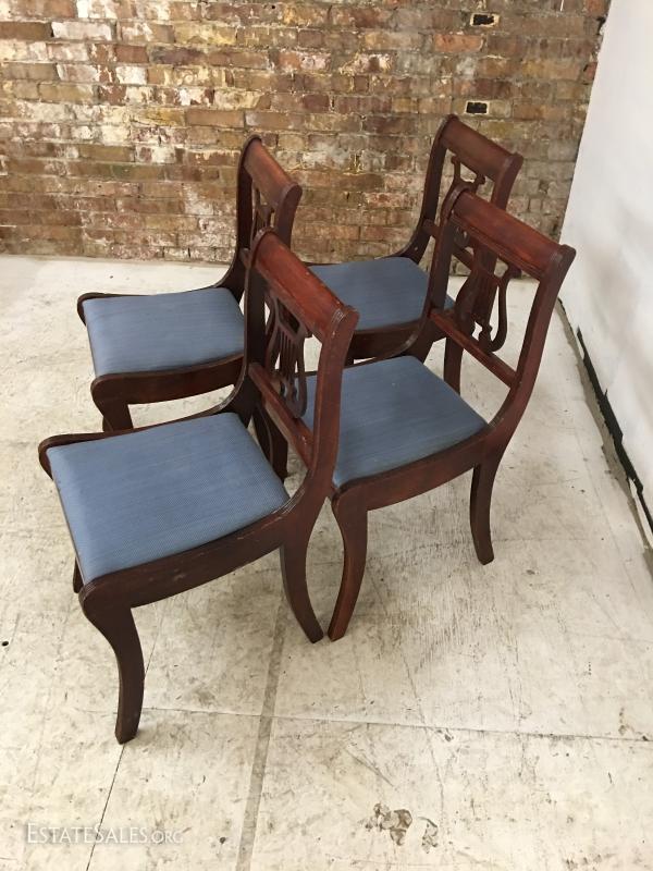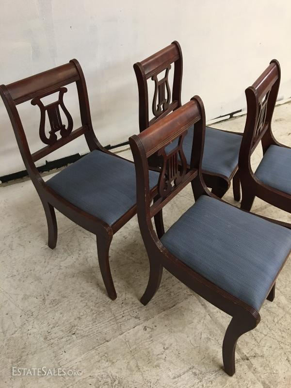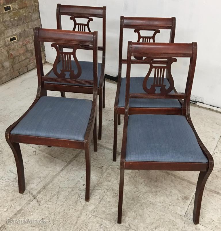 Lot/4 Duncan Phyfe Lyre-Back Mahogany Dining Chairs. In good overall condition.
