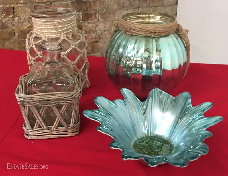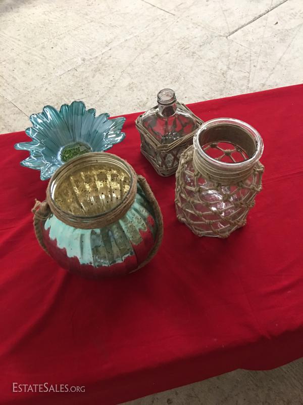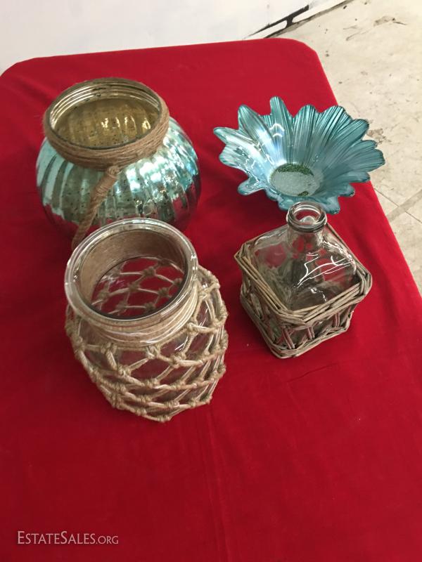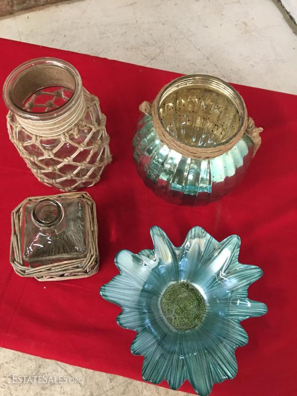 Lot/4 Glass Vases Biowls Jugs Decorative Blue Glass~~