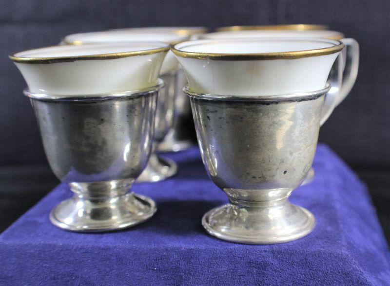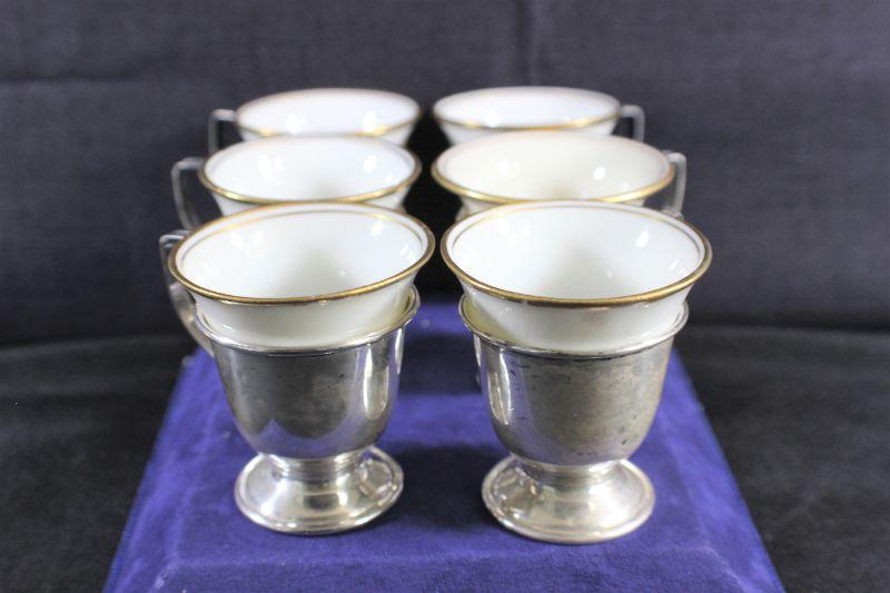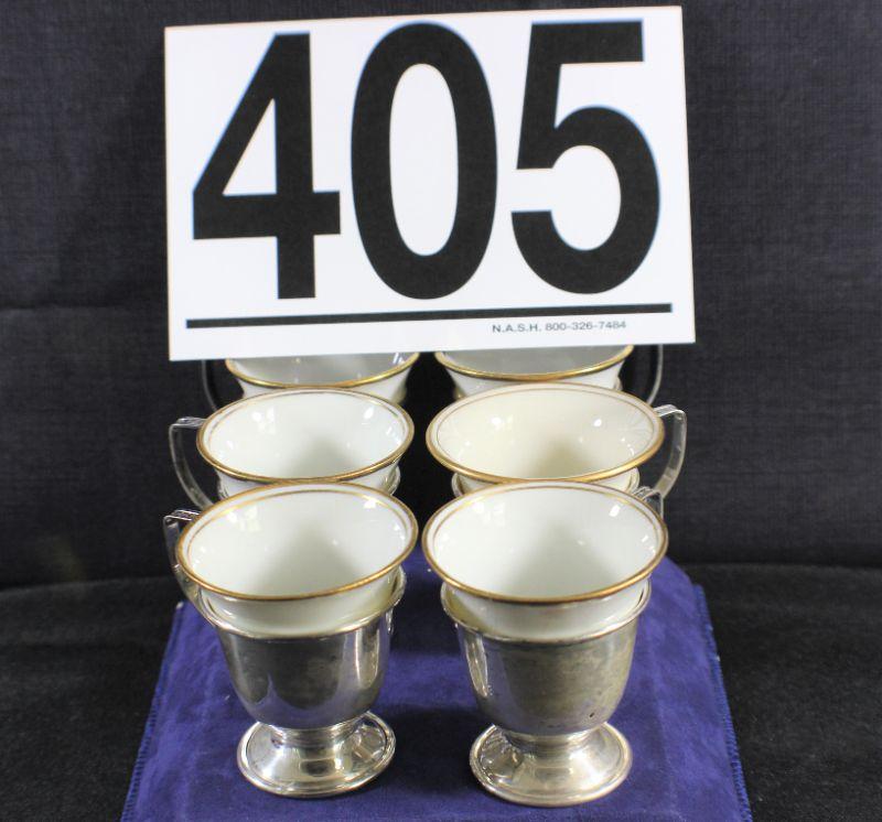 LOT#405: 6 Buffalo China Sterling Silver & Porcelain Demitasse Cups