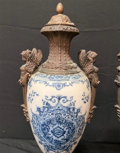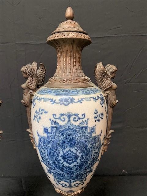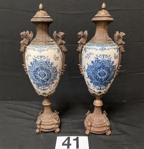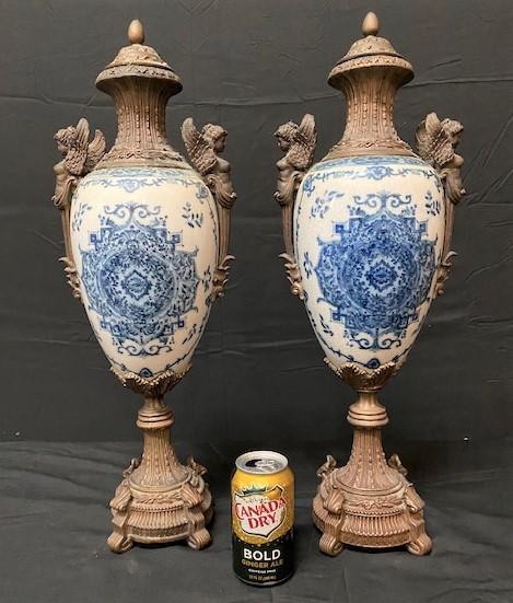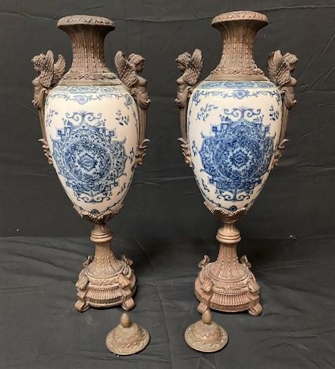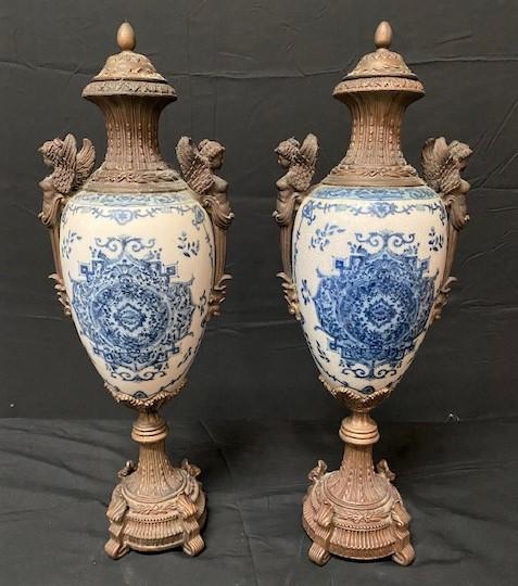 LOT#41: Pair of French Style Porcelain Capped Urns