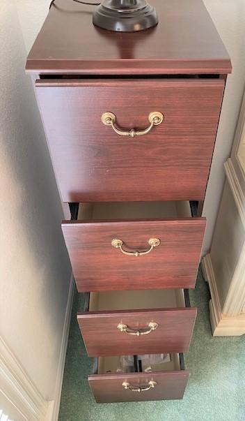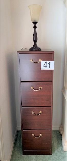 LOT#41DR: Wood 4 Tier File Cabinet w/ Lamp