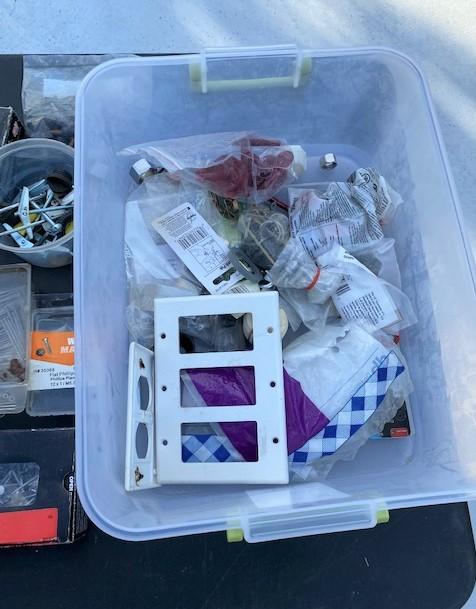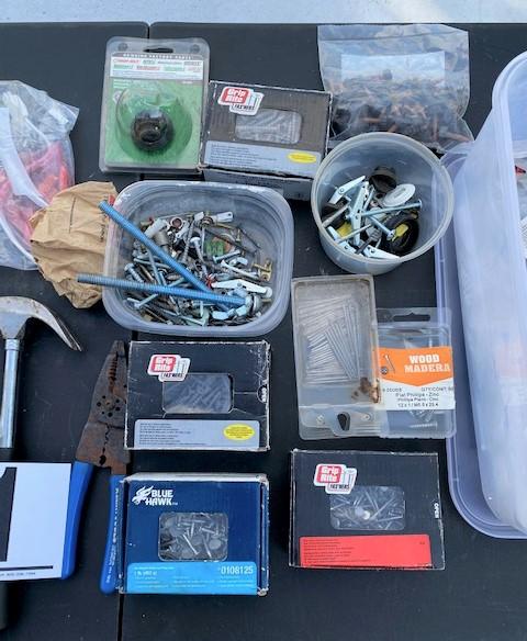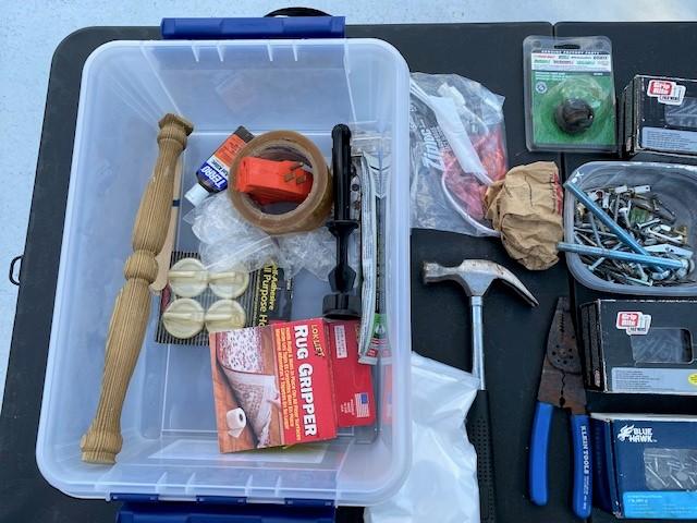 Includes: screws, nails, hammer, fasteners, rug gripper, electrical plates & more.