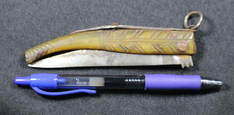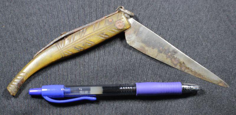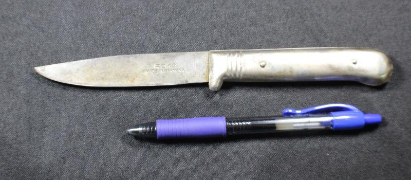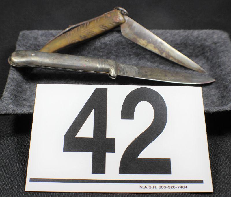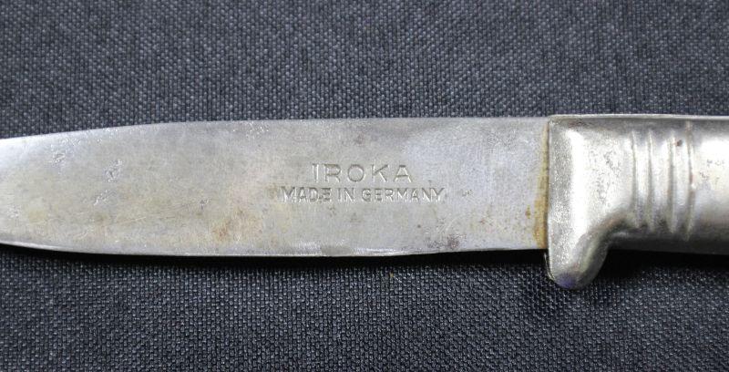 One is in aluminum Iroka, made in Germany. Other is steel blade with a carved Bakelite handle resembling a fish. Measurements: Largest = 8"L