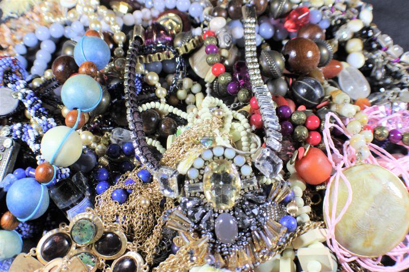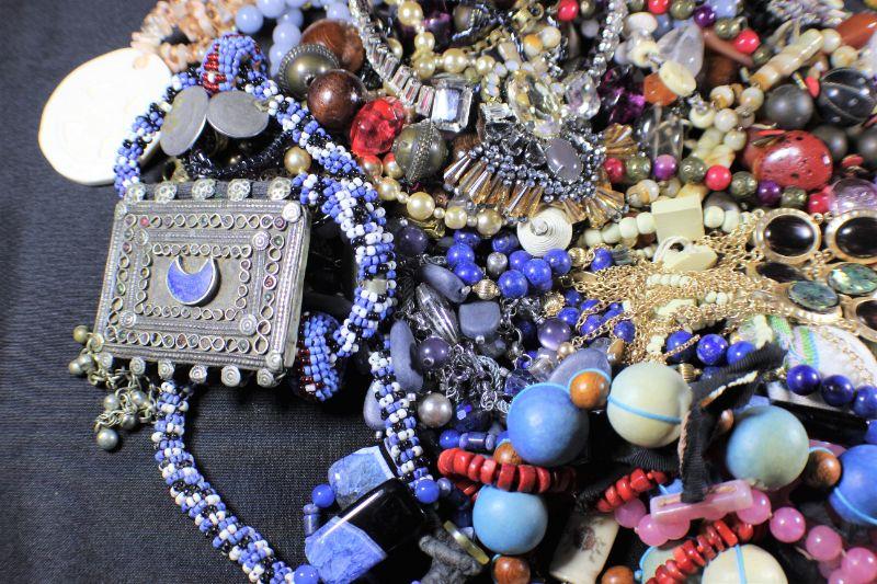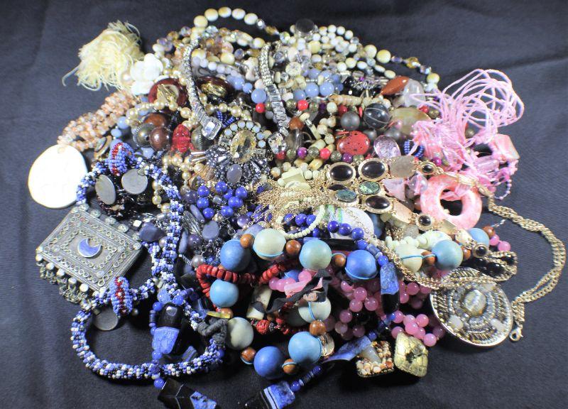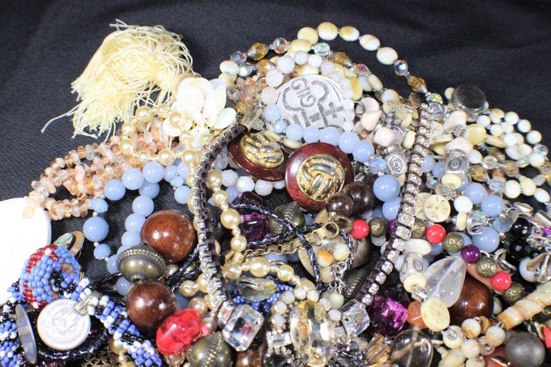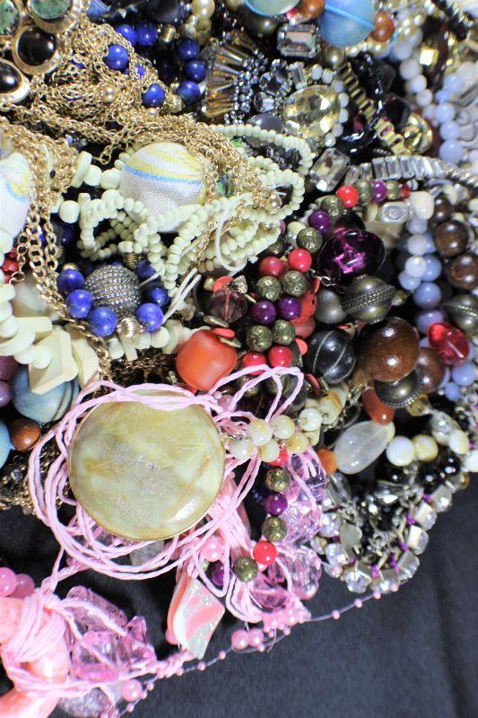 Mixed Assortment of necklaces, earrings & more. Bag size: 2.5 gallons. Estimated total lot weight: 7 lbs