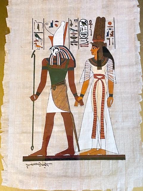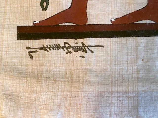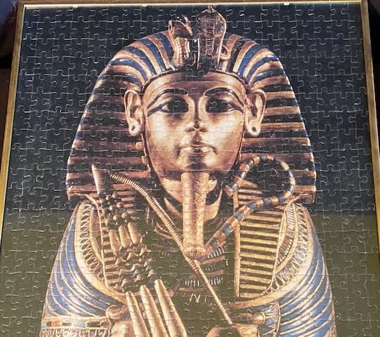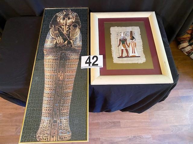 Framed jigsaw puzzle of King Tut and signed papyrus. Measurement: 39"L (tallest) x 20"W (widest)