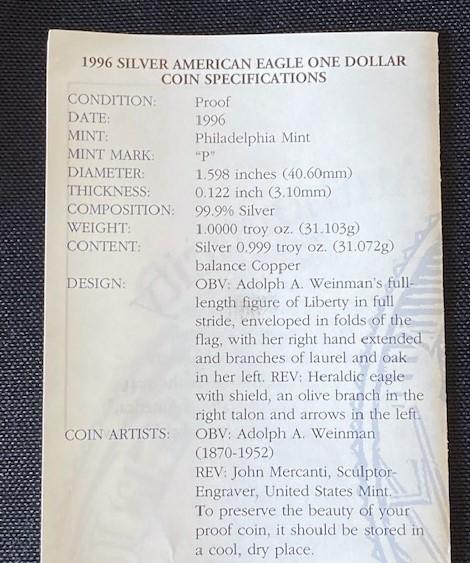 LOT#43: 1990-P American Silver Eagle Proof 1oz Silver Lot #4