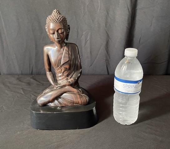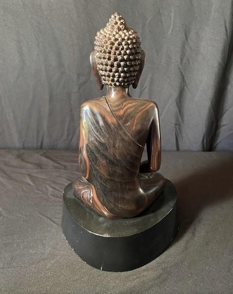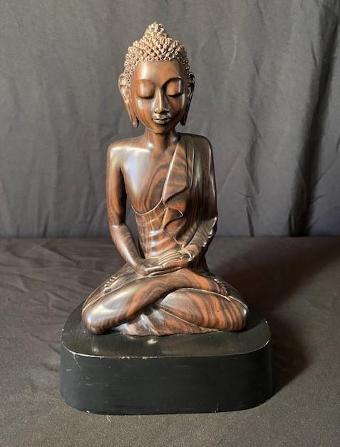 According to appraisal: "Rosewood Figure of a seated Buddha on black wood base from Bali" Estimated weight of lot: 3lbs. Measurement: 11 1/2"H x 7 1/2"W