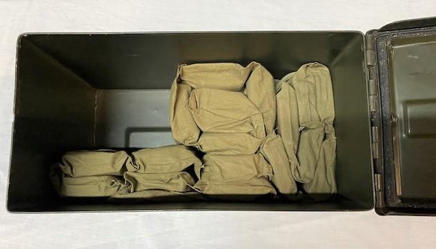4 belts. 240 rounds. With metal box. Estimated weight of lot: 30lbs. Measurement: 12" x 7" x 6"