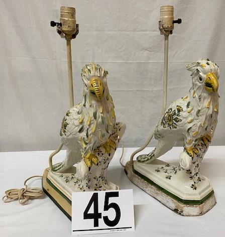 LOT#45: Pair of Hollywood Regency Cockatoo Lamps