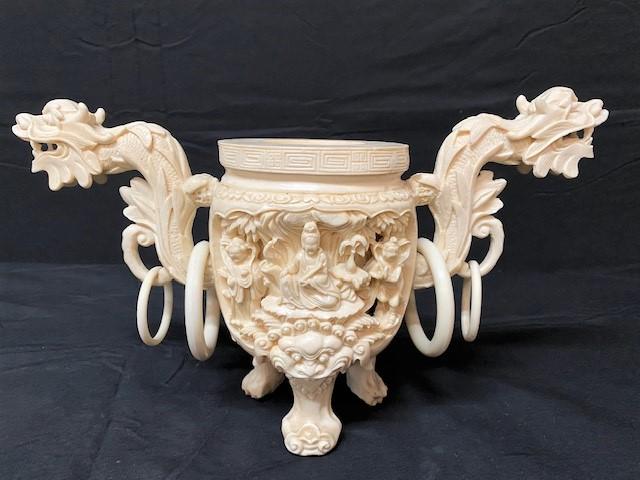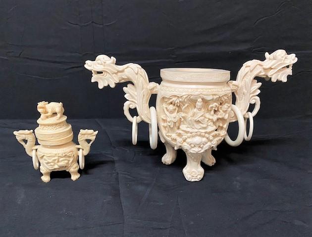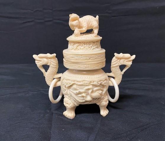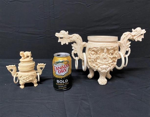 Included in scenes: dragon heads, carved rings & more. Measurement: 8 1/2"H x 14"W (Largest)