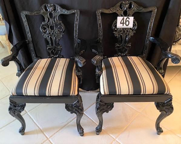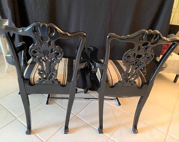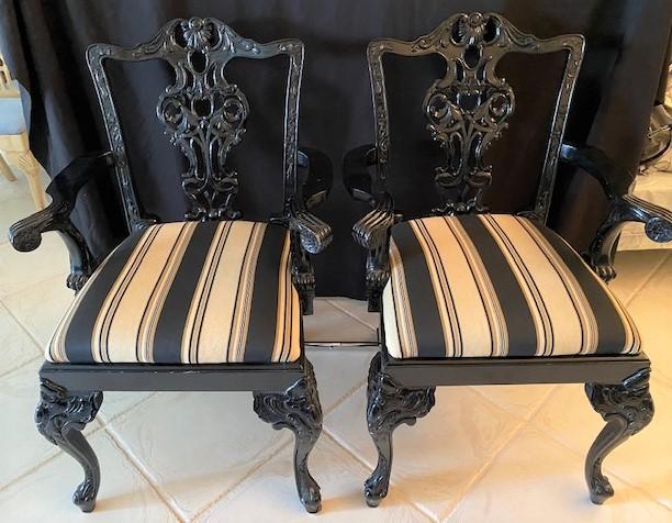 LOT#46LR: Black Lacquered Chippendale Arm Chairs