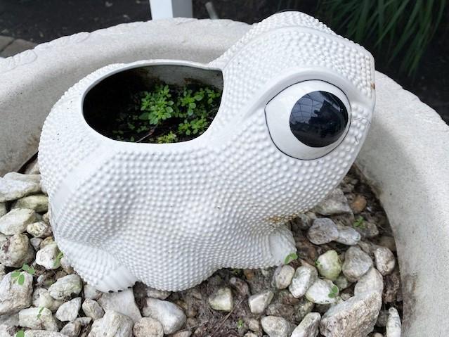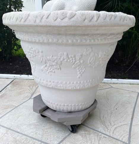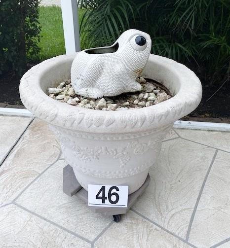Includes a large plastic pot & frog resin planter. Large pot comes with a rolling plant stand with drain. Measurement:23" diameter x 18"H (large pot)
