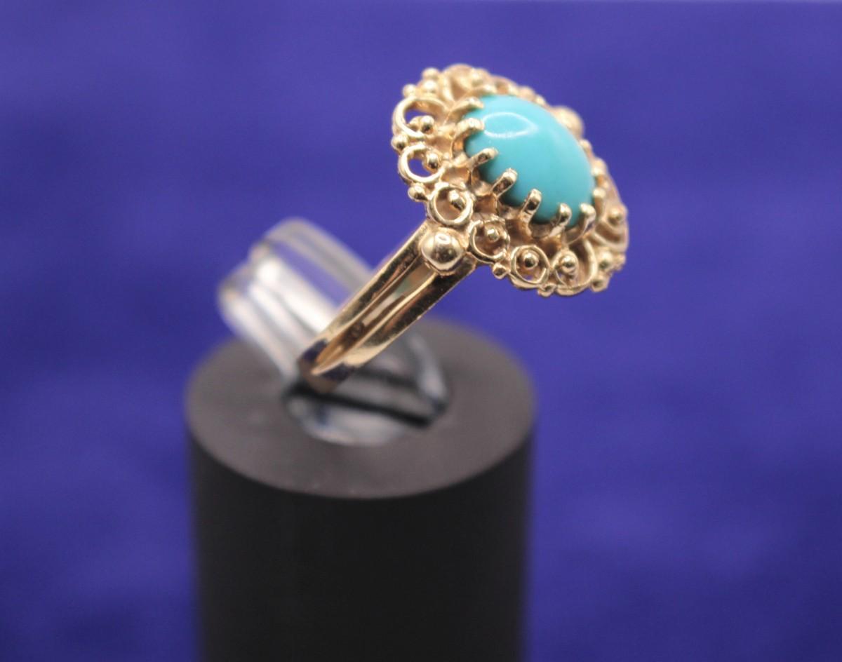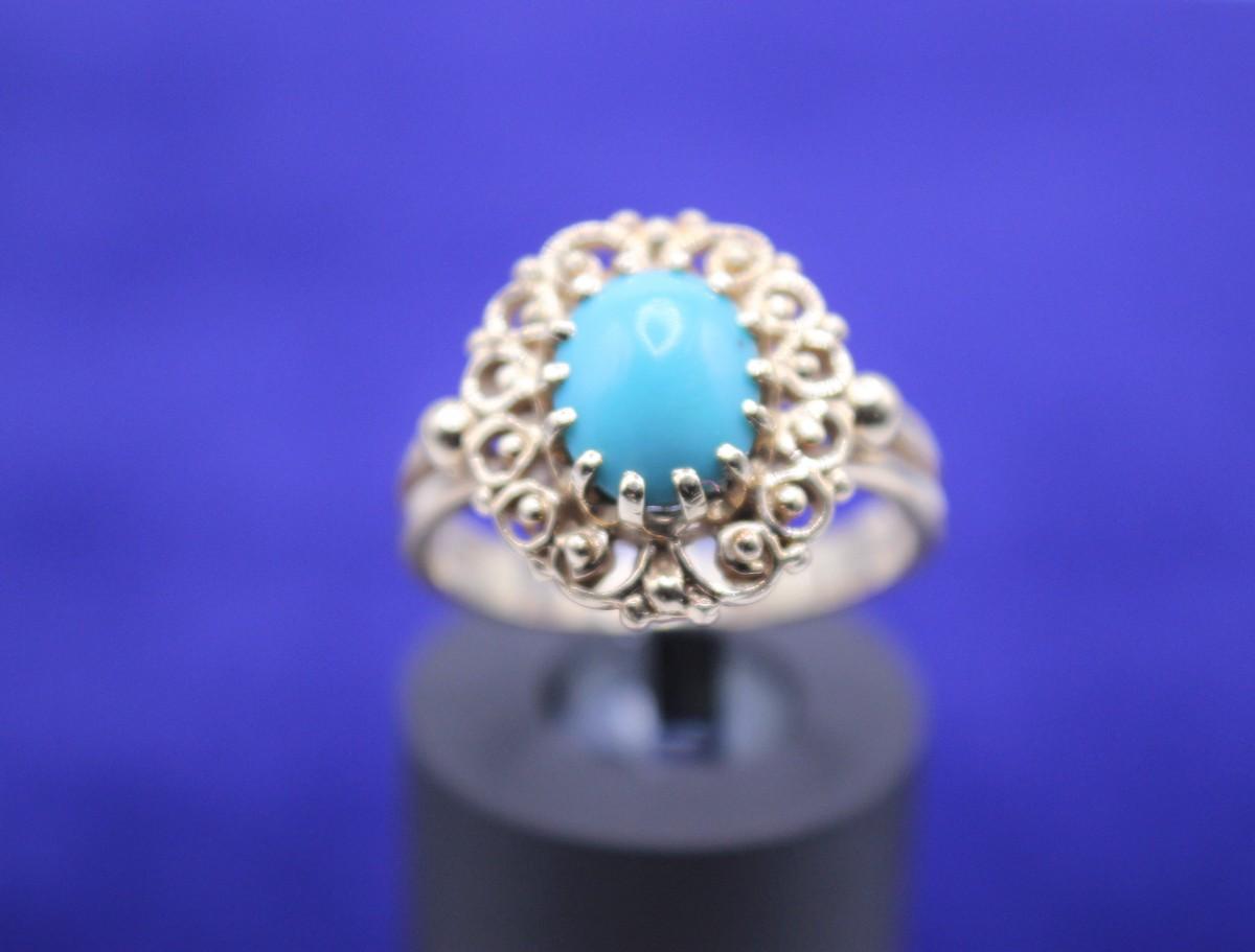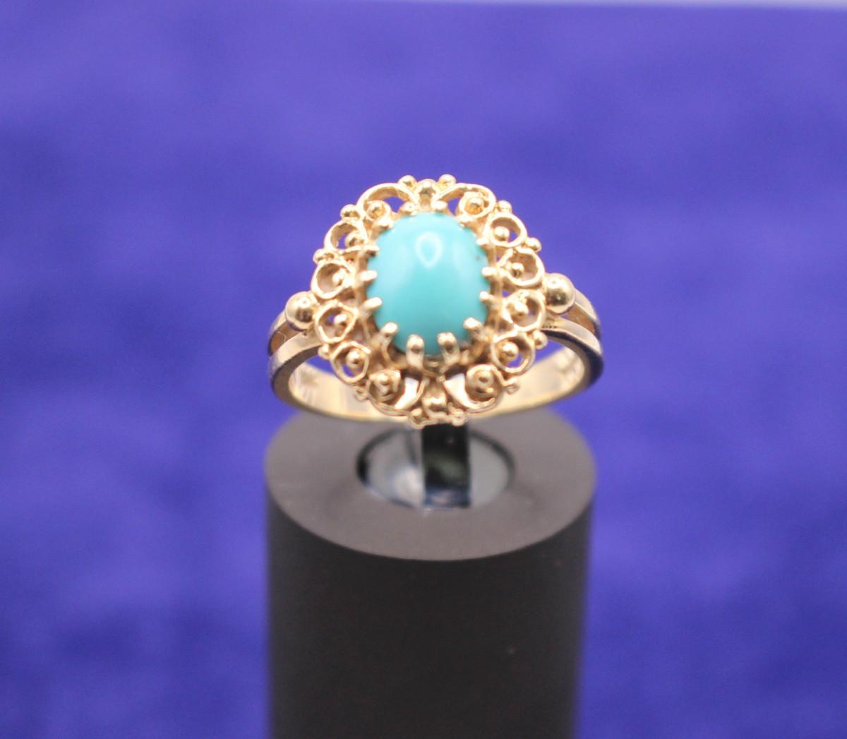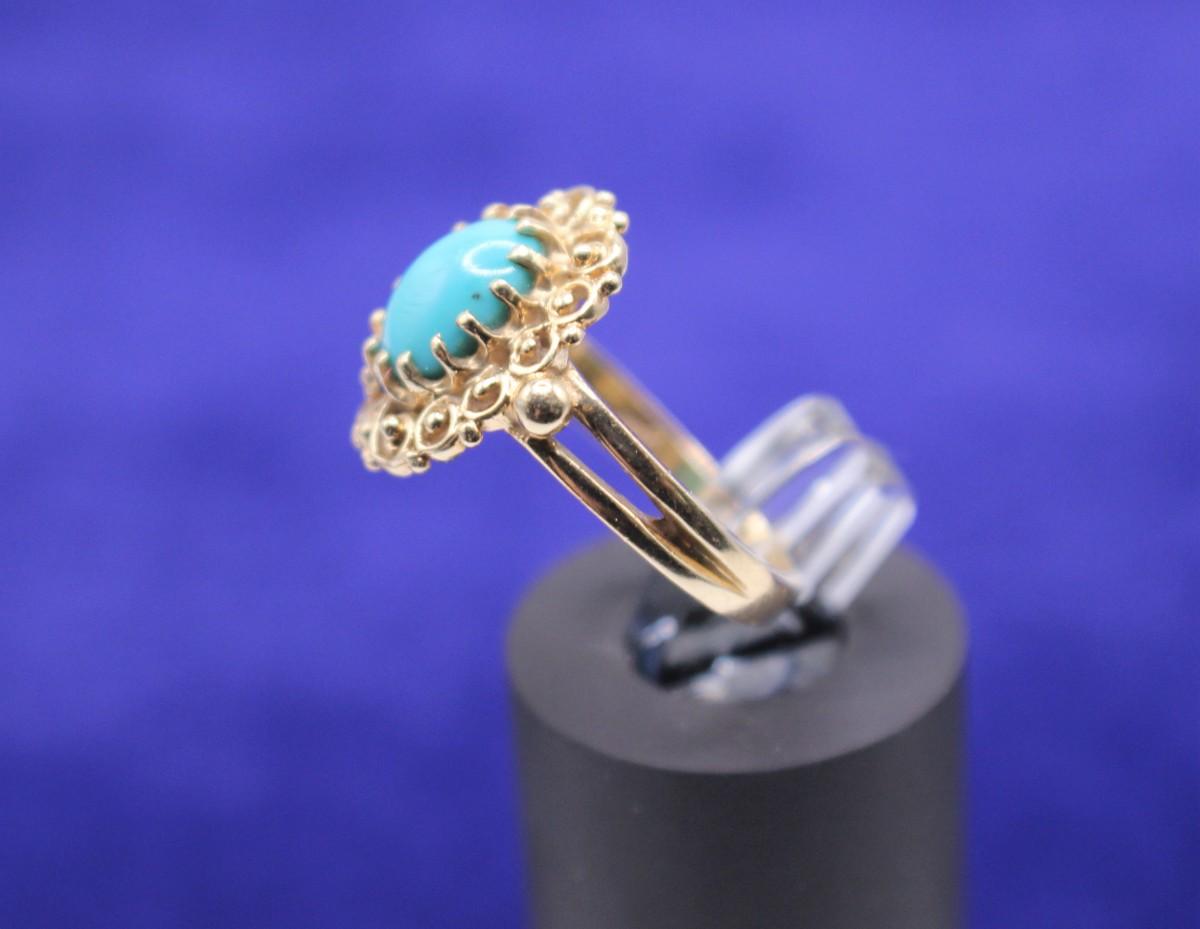 LOT#48: Stamped 10K Turquoise Ring [3.16g]