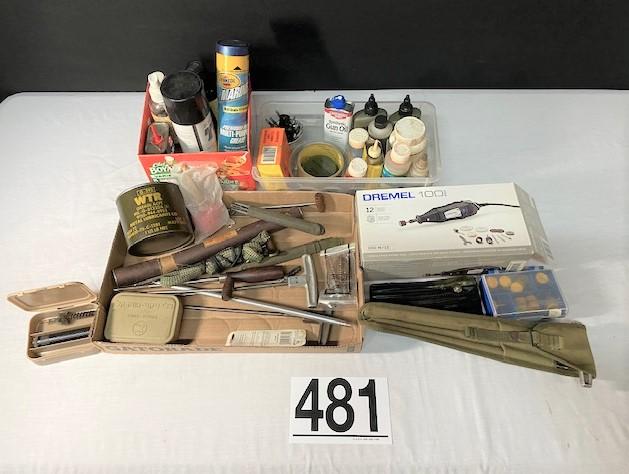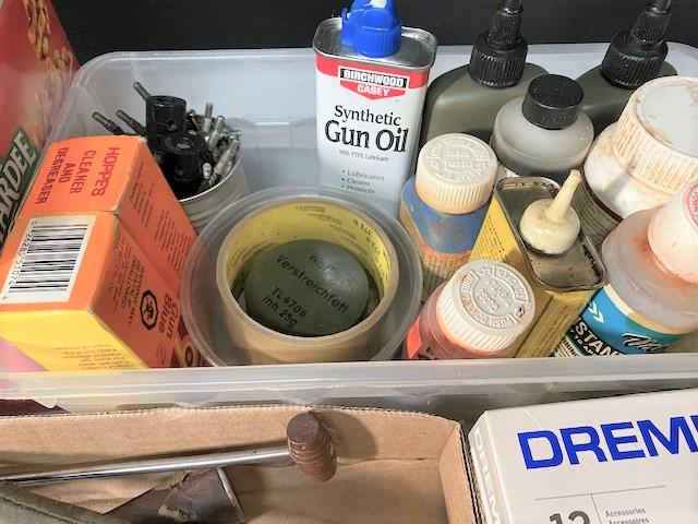 Including: gun cleaning kits, brushes, solvents, Dremel tool & more. Estimated weight of lot: 15lbs.