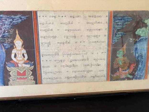 LOT#48LR: Thai Polychrome Decorated Pages Under Glass