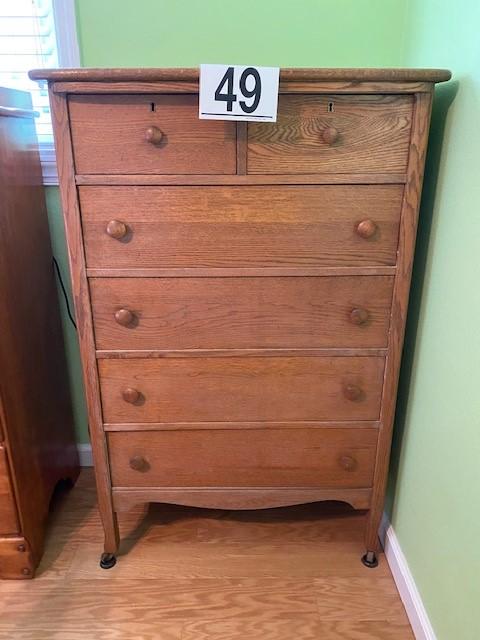 LOT#49B2: Antique F&H Tiger Oak Chest of Drawers