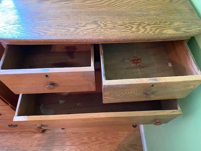 Six drawers. On casters. No keys. Measurement: 48"H x 32"W x 17"D