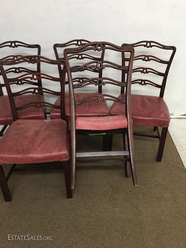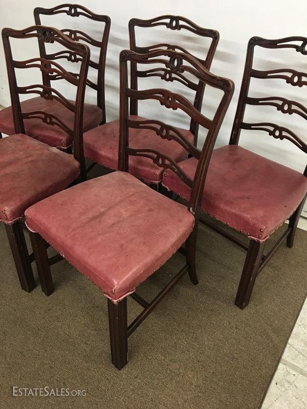 Sheraton or Hepplewhite Style Mahogany Dining Chairs. In good oveall condition, wear from age and use.
