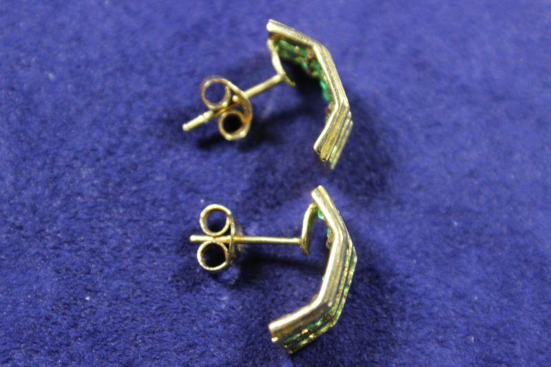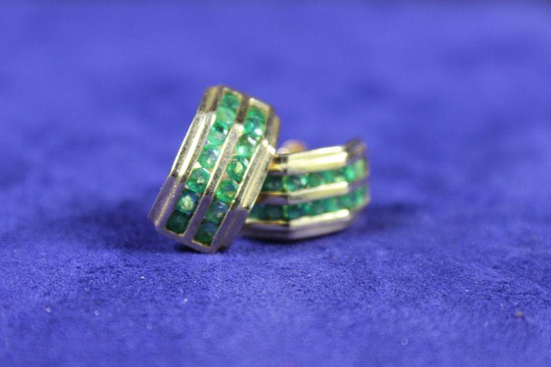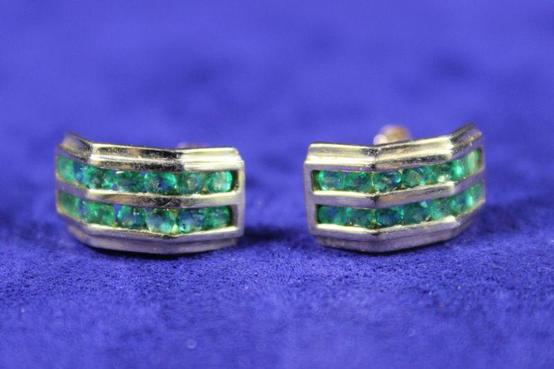 Emerald colored channel set stones.