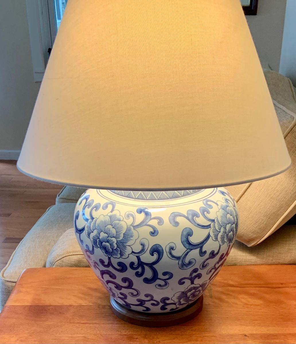 Lot:500G:  Blue Porcelain Ginger Jar Lamp