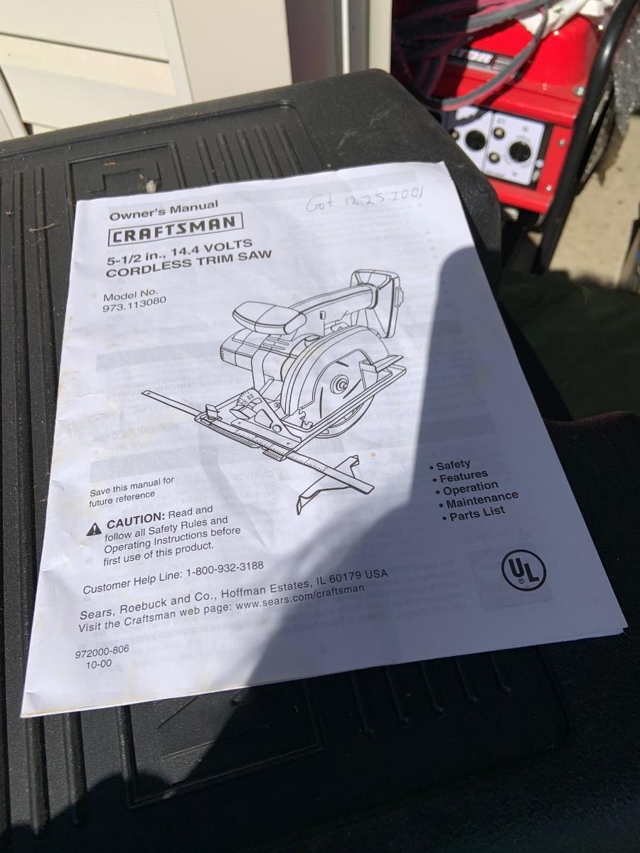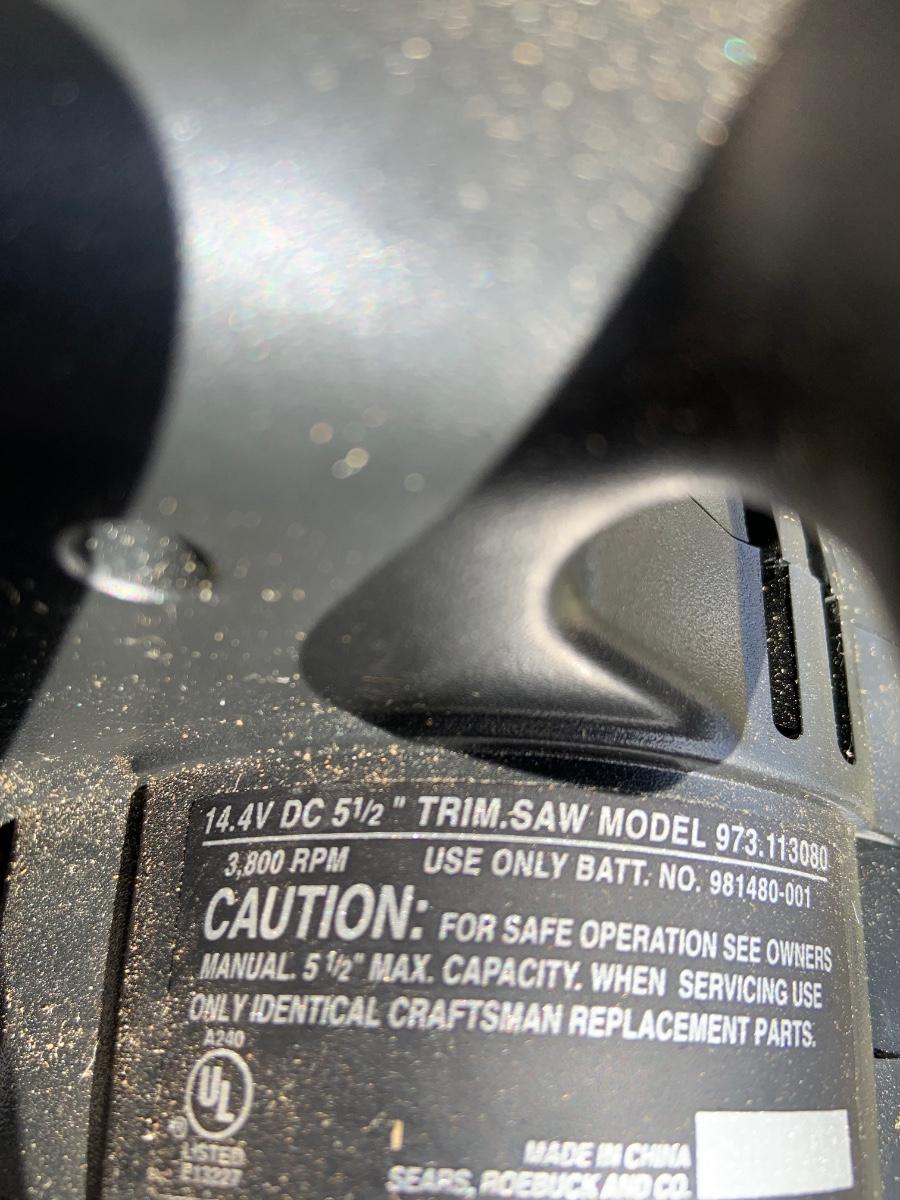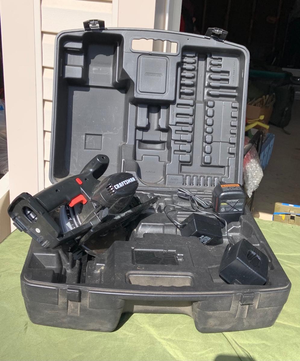 LOT500G: Craftsmen Cordless Trim Saw with Blade, Battery, Charger and Case.