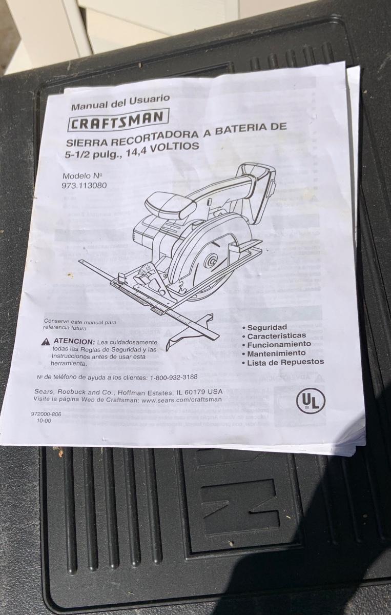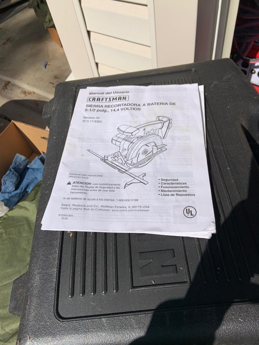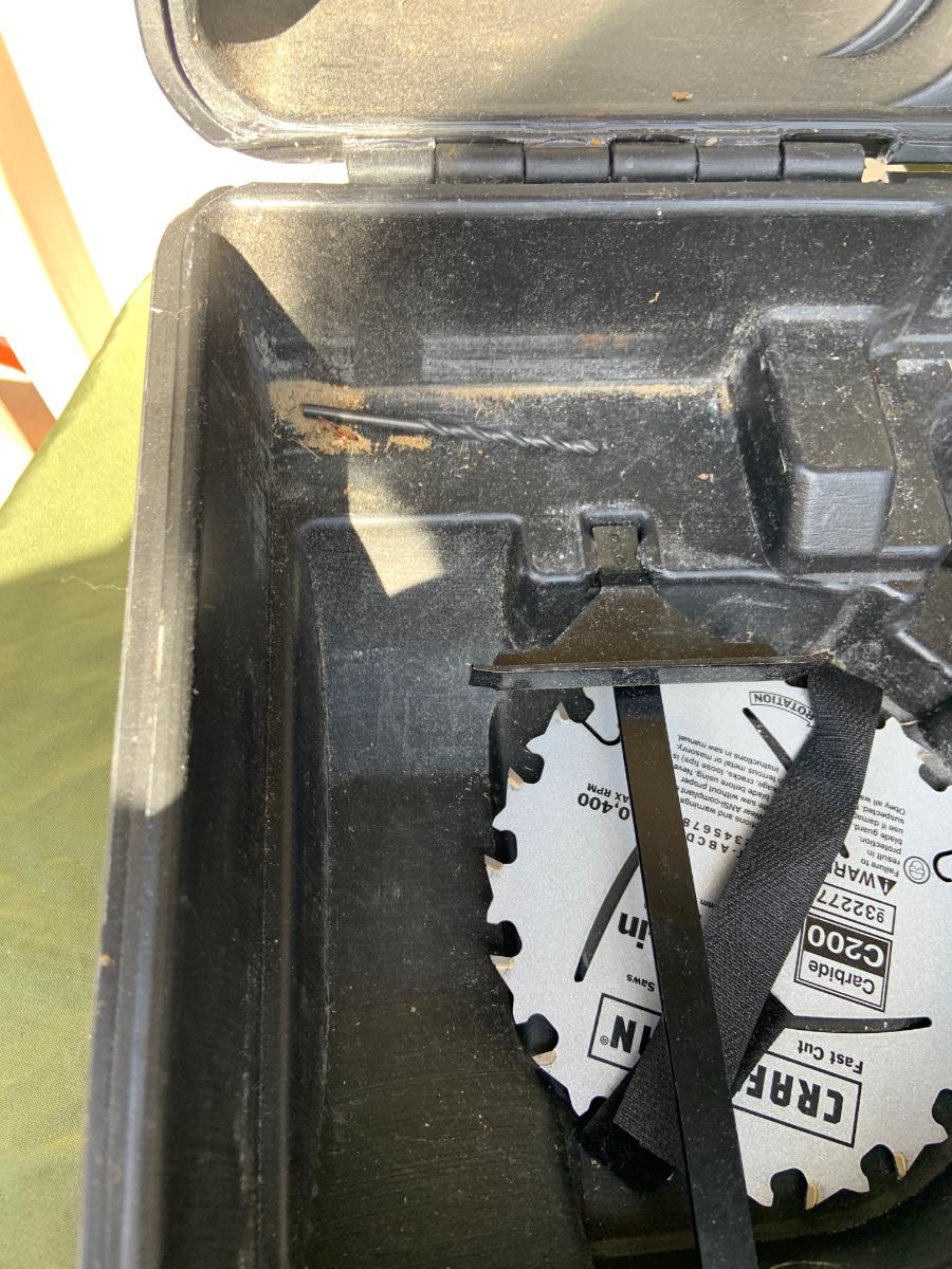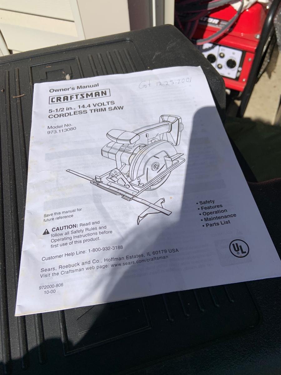 LOT500G: Craftsmen Cordless Trim Saw with Blade, Battery, Charger and Case.