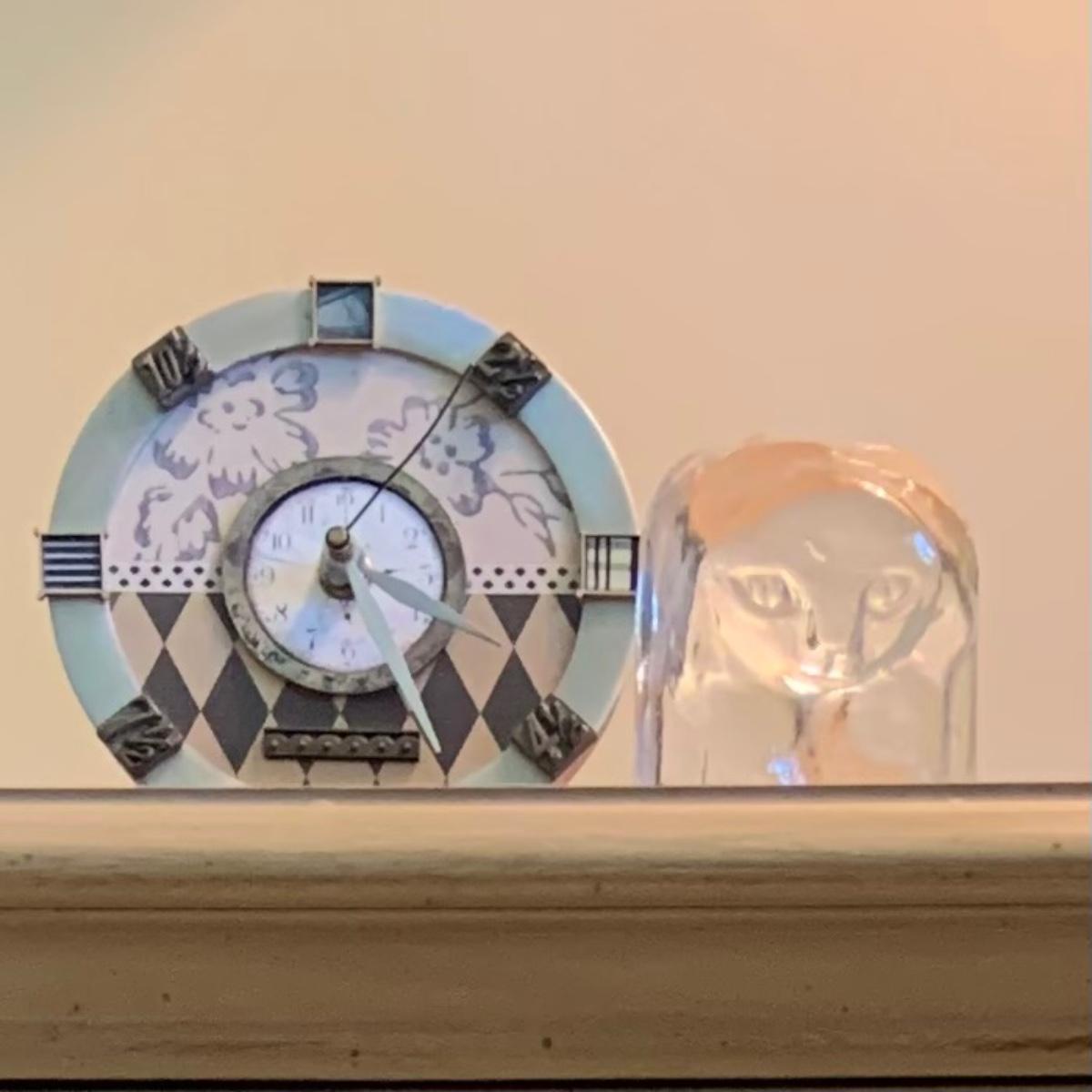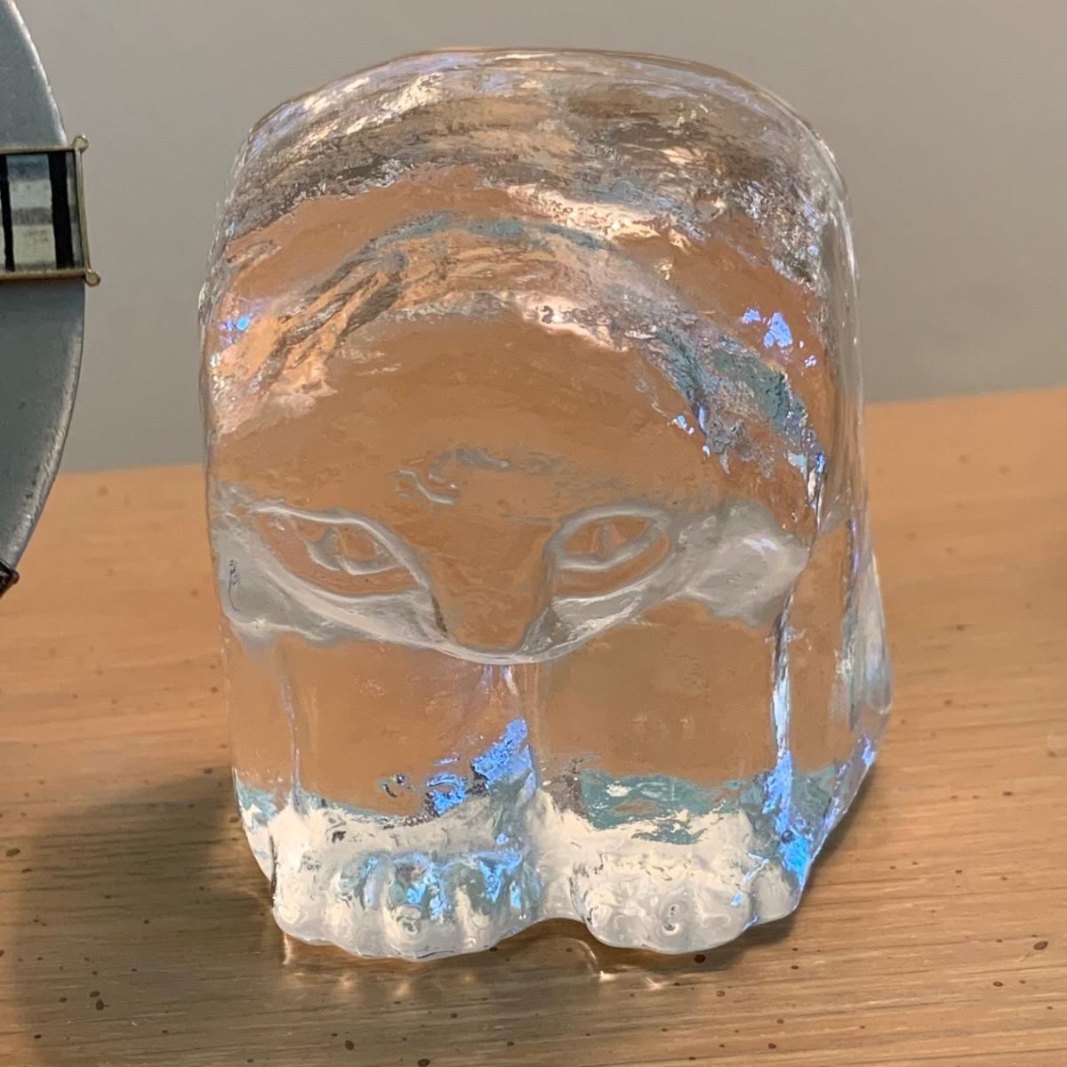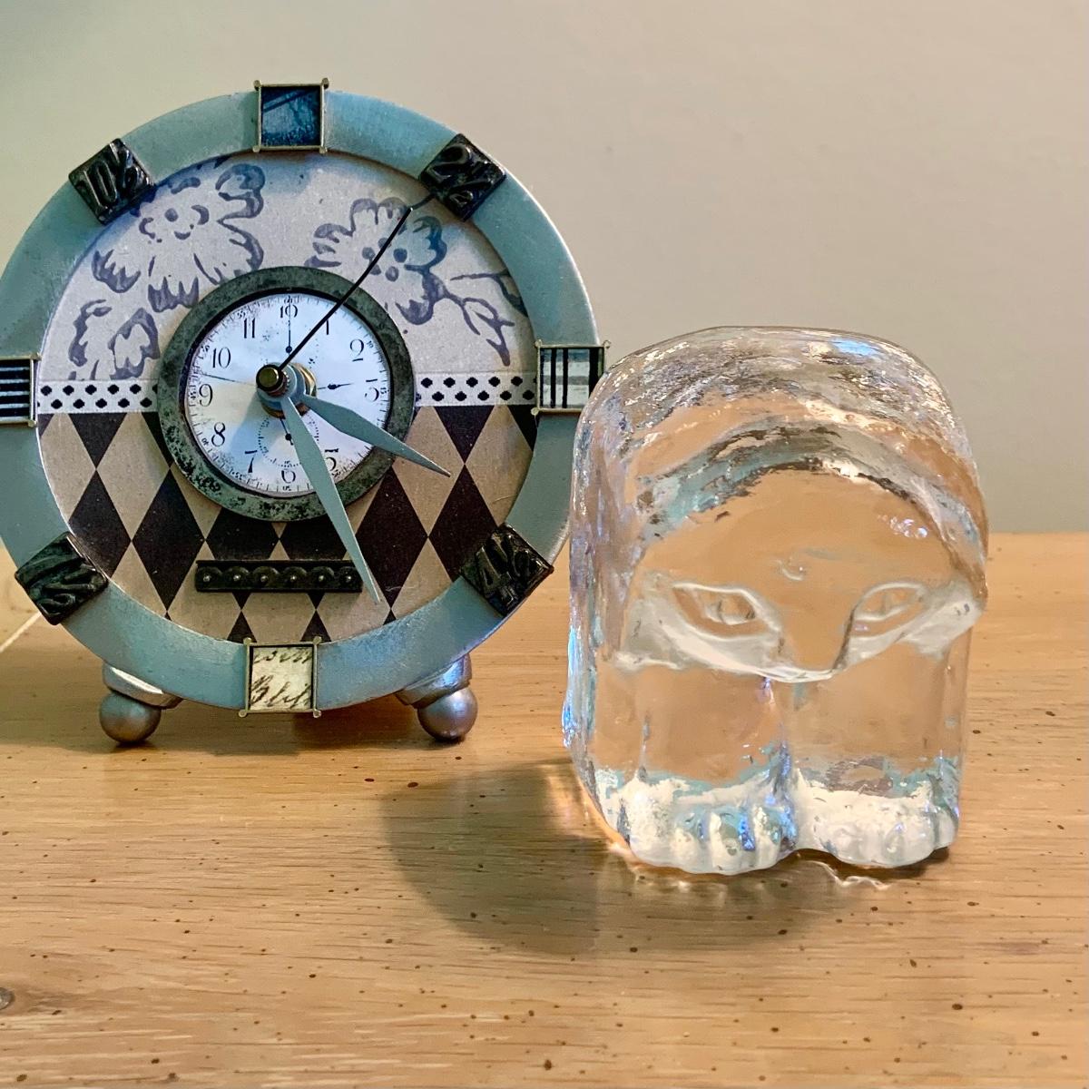 Lot:500G: Signed Kosta Boda Crystal Cat Paperweight and Clock