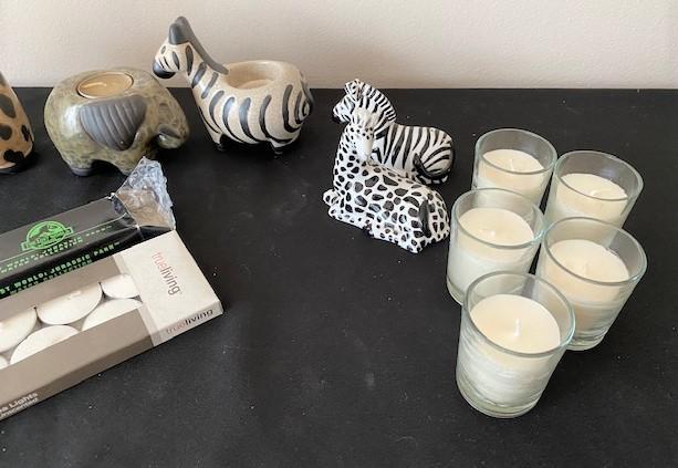 Including candles. Estimated total lot weight: 5lbs. Measurement: 11"H x 6"W (largest)