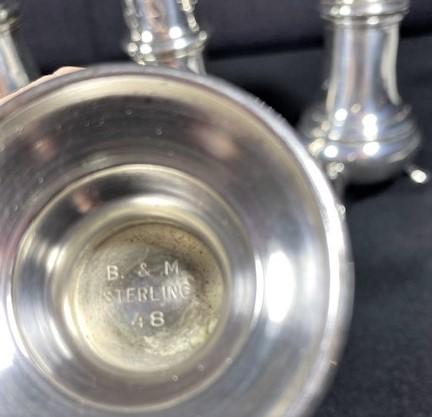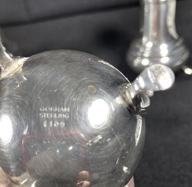 One of the Gorham pieces is dented. These pieces are unweighted. 267g total weight. Measurement: 5"H