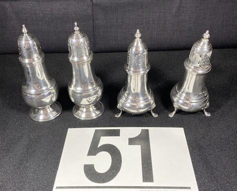 LOT#51DR: 2 Pairs Sterling Silver Salt & Pepper Shakers 267g