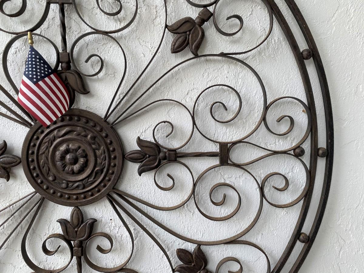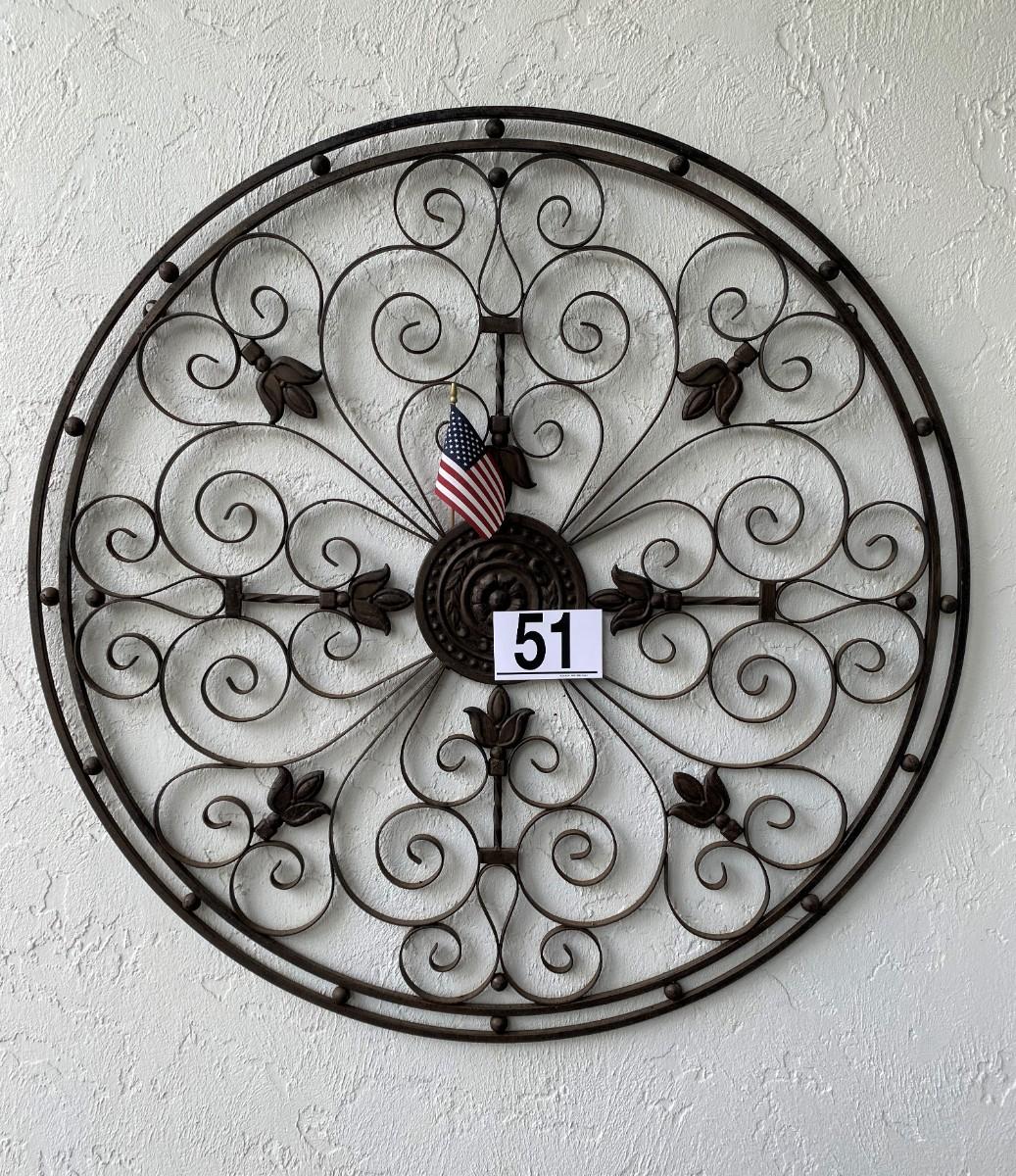 Bronze in color. Some surface rust. Measurement: 48" Diameter