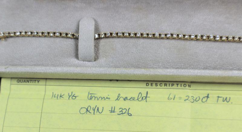 According to receipt: 61 diamonds. 2.30 total carat weight. Measurement: 7 1/2"L.