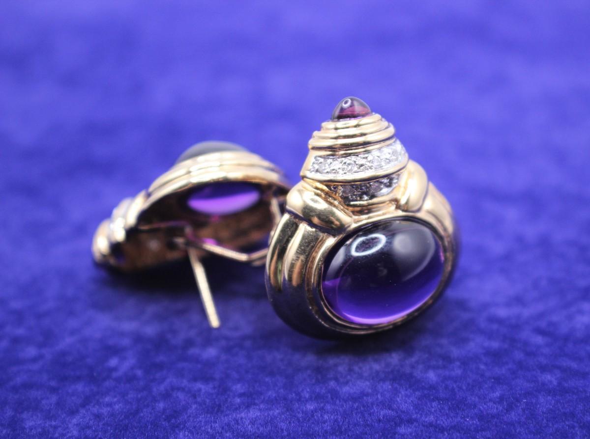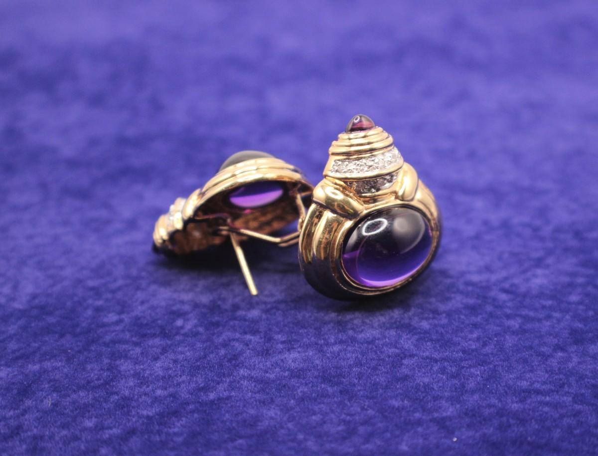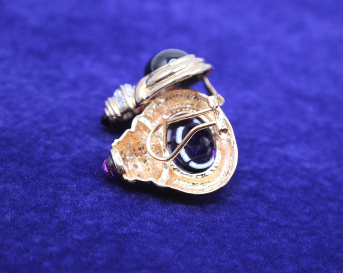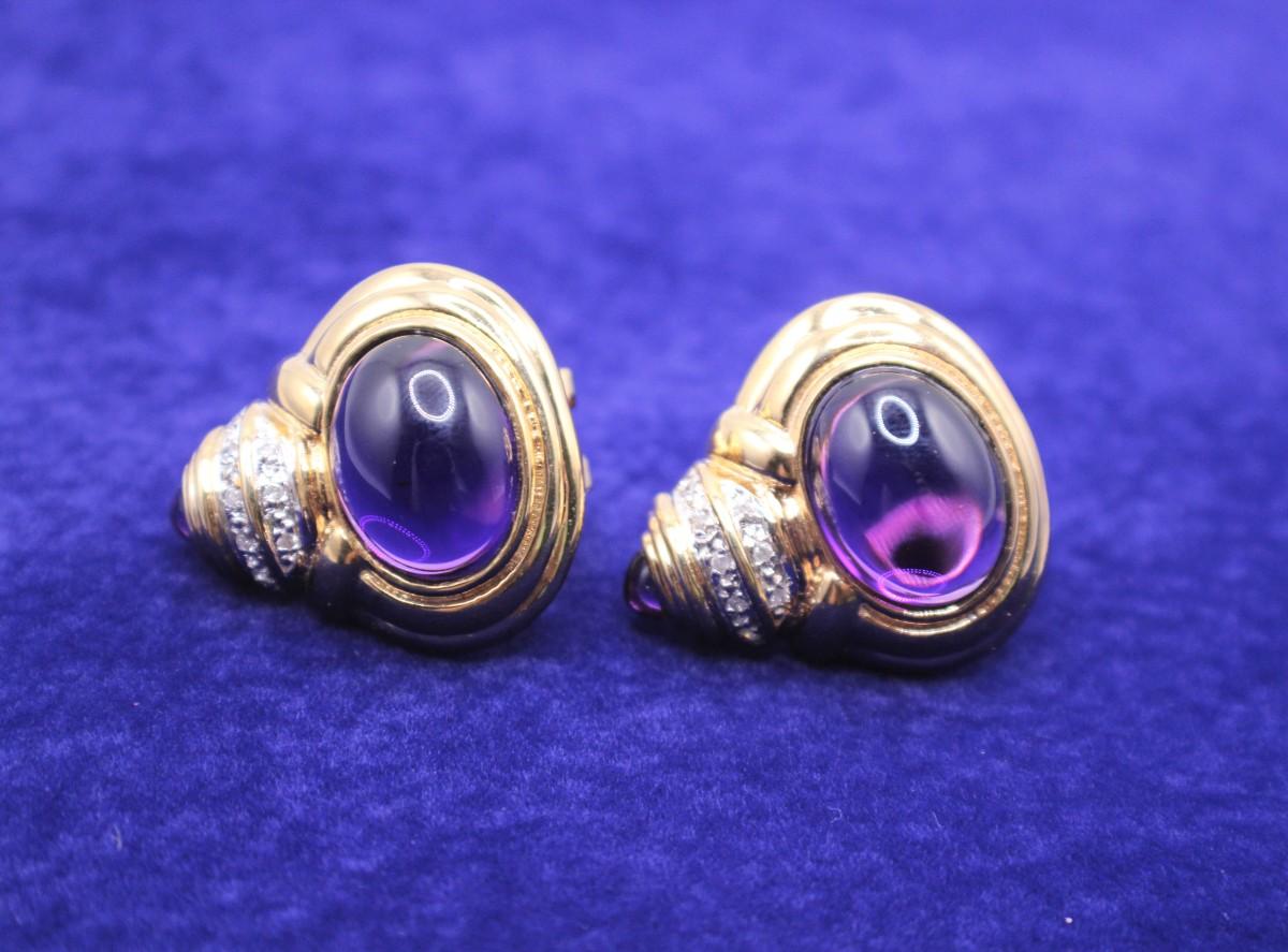 LOT#54: Stamped 14K Designer Amethyst Cabochon & Diamond Earrings [15.81g]