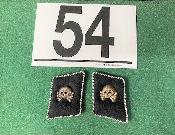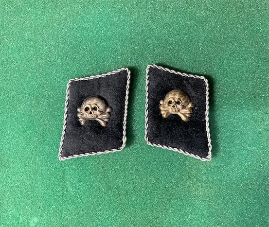 LOT#54B: WWII German Totenkopf Skull Officer Collar Tabs