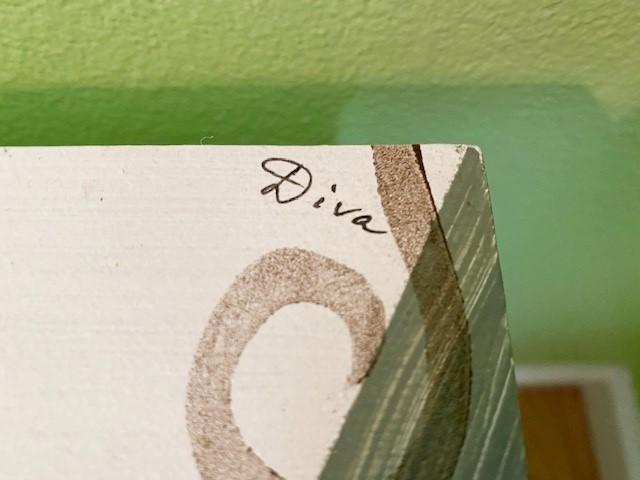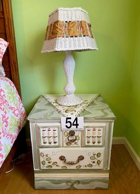 Stand is signed "Diva." Includes wicker lamp. Measurement: 23"H x 22"W x 20"D