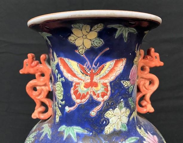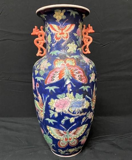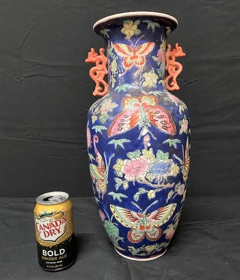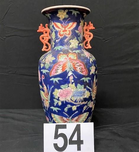 LOT#54:Tall Porcelain Asian Butterfly Vase