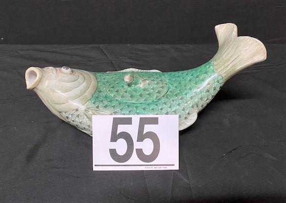 LOT#55: Signed Asian Porcelain Fish Tureen