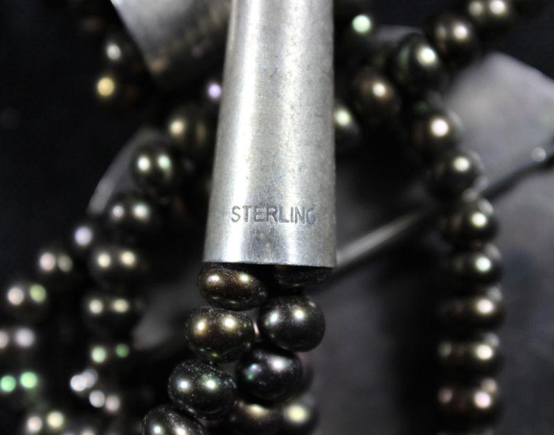 Believed to be tahitian pearls, sterling silver & onyx. Total weight: 2.5g. Measurement: 22"L (approximately)
