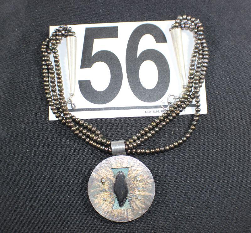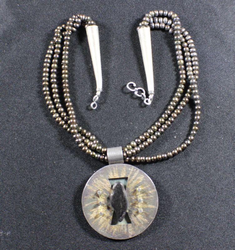 LOT#56: Designer Junko Nakazawa Marked Sterling Abstract Necklace