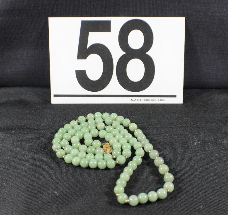 LOT#58: Marked Silver & Jade Beaded Necklace
