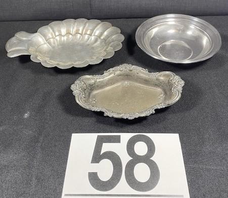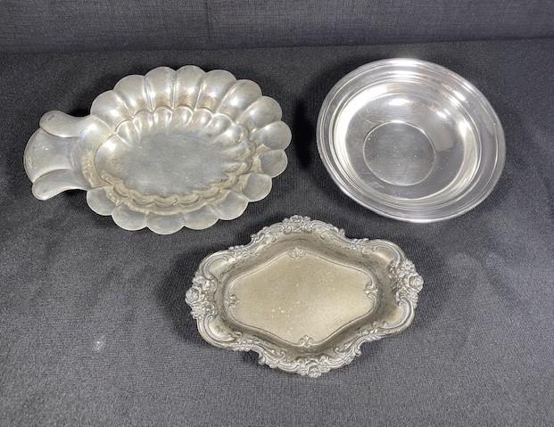 One Gorham, One Wallace repousse, One scalloped marked Sterling only. 304g total weight. Measurement: 8"L x 6"W (longest)
